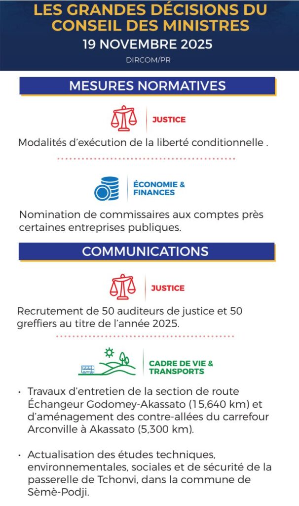 Au Bénin le gouvernement a tenu son rendez vous hebdomadaire du Conseil des ministres sous la présidence de Patrice Talon.