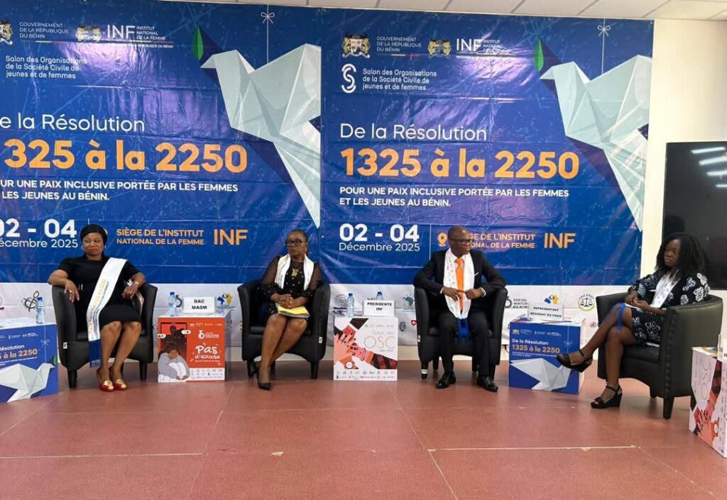 Du 2 au 4 décembre à Cotonou, le siège de l’Institut national de la femme (Inf) accueille la 2ᵉ édition du Salon national des organisations de jeunes et de femmes, placée sous le thème : « De la résolution 1325 à la 2250 pour une paix inclusive portée par les femmes et les jeunes au Bénin ». Une rencontre d’envergure pour faire le point, tracer de nouvelles orientations et affirmer la place stratégique des femmes et des jeunes dans la consolidation de la paix.